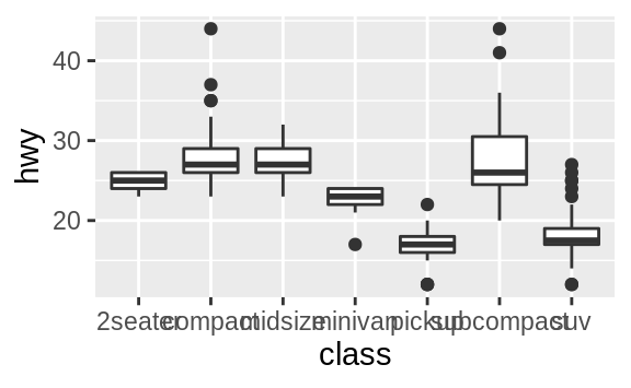 geom_boxplot()? Create a visualisation of thempgdataset that demonstrates it.