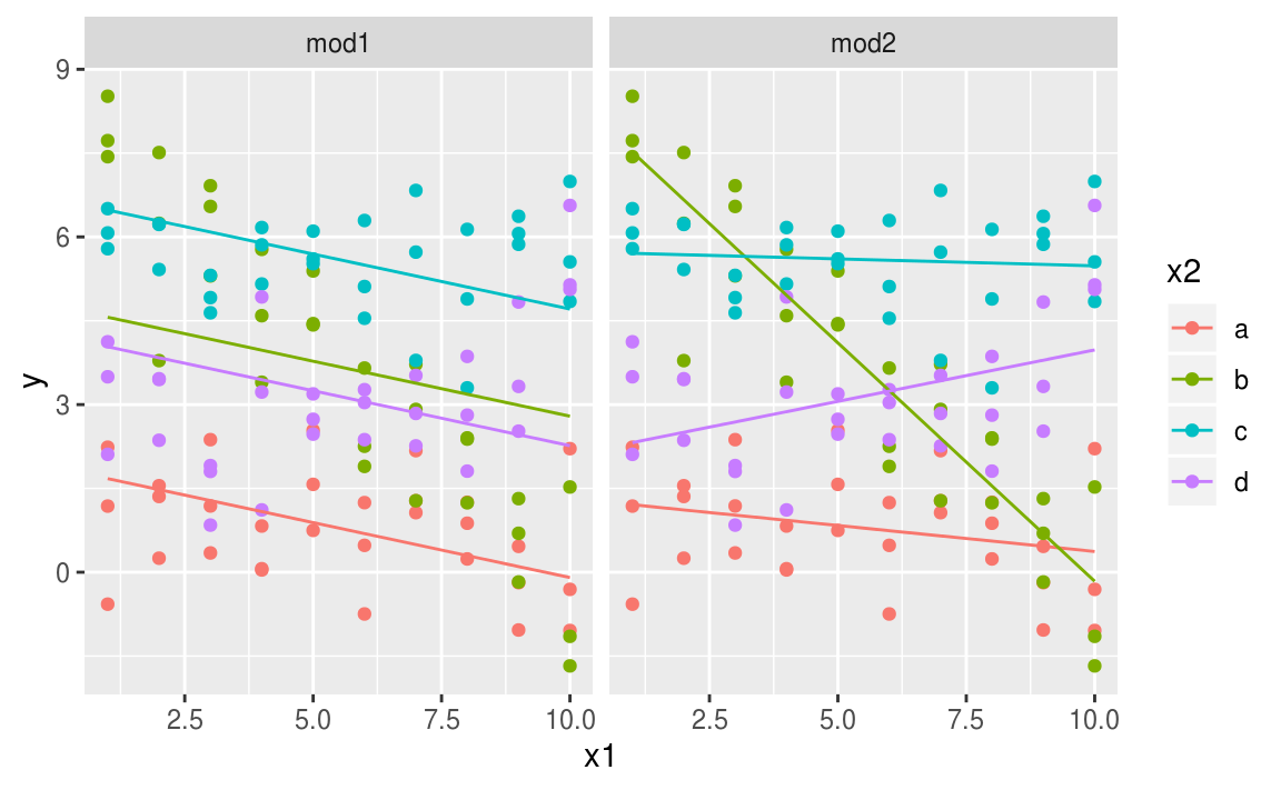 mod2 <- lm(y ~ x1 * x2, data = sim4)