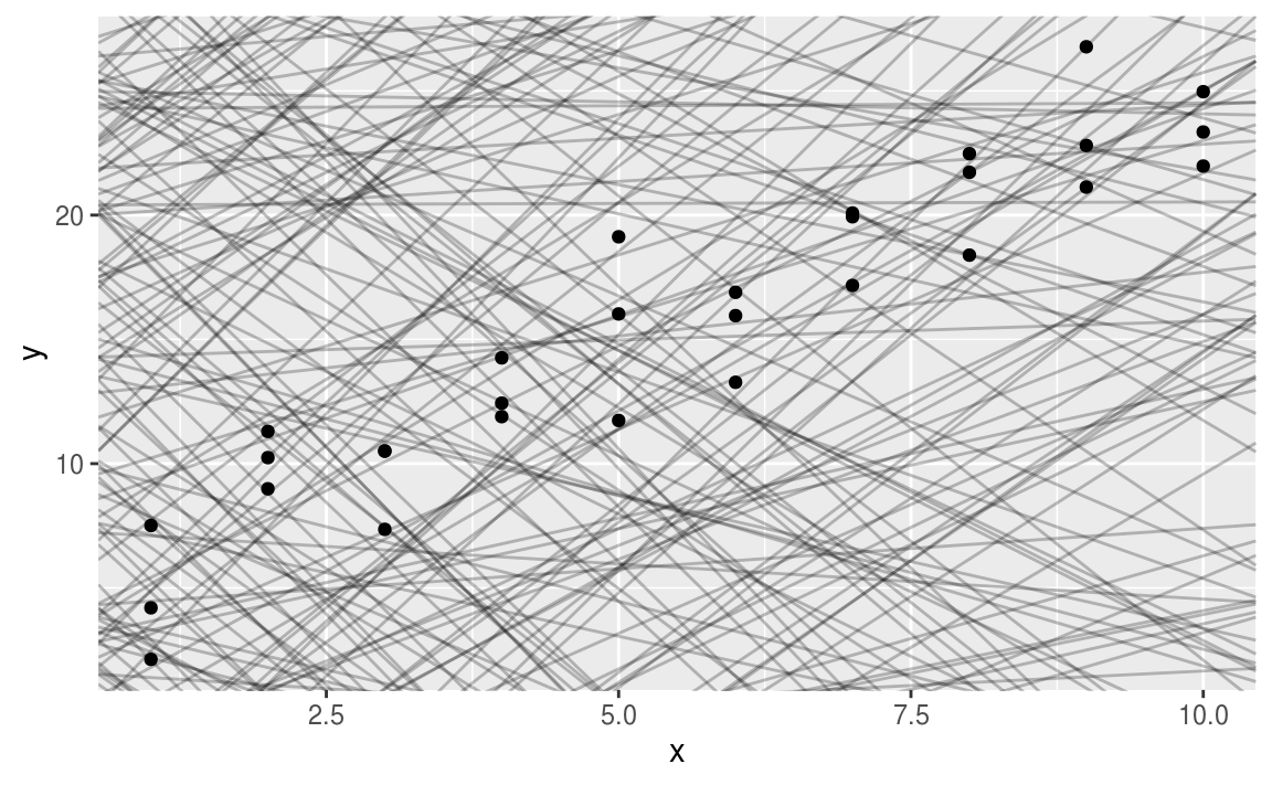 geom_abline(aes(intercept = a1, slope = a2), data = models, alpha = 1/4) +